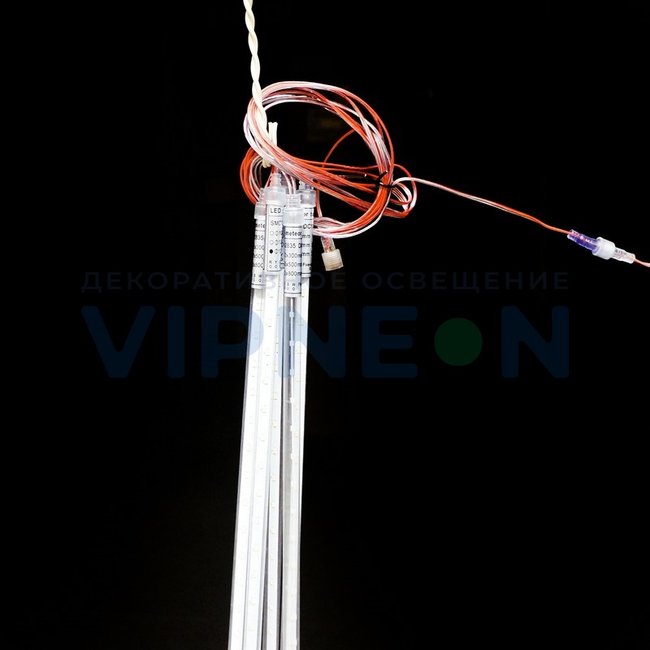 В каждой сосульке вмонтировано 72 диода SMD 5050, потребляемая мощность 1 Вт. Экономичный светодиодный прибор подключается к сети стандартным напряжением 220В. Гирлянды обладают высокой степенью защиты, как от агрессивных воздействий, так и от низких температур. К достоинствам LED технологии относятся такие характеристик, как низкое энергопотребление и продолжительный срок службы.