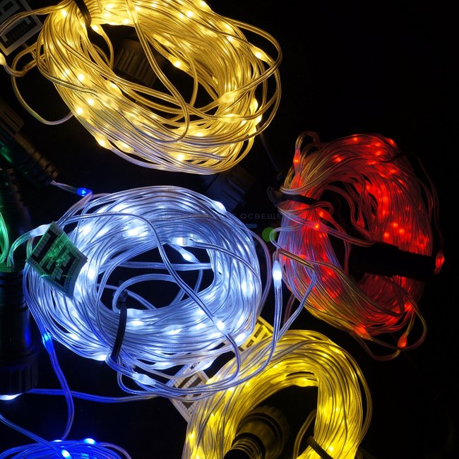Светодиодная гирлянда нить, прозрачный провод, 10 м, желтая