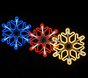 В период Новогодних праздников наиболее востребованным декором является световая иллюминация. Коллекция светодиодных снежинок – простой и эффектный способ украсить фасад, интерьер, витрину, фронтон здания. Осветительные LED устройства отличаются высокой экономичностью, снежинки габаритами от 40 Х 40 см до 90 Х 90 см потребляют 10 – 20 Ватт электроэнергии.