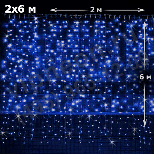 Светодиодный дождь ( LED Плей Лайт), 2*6м, синие диоды, мерцающий