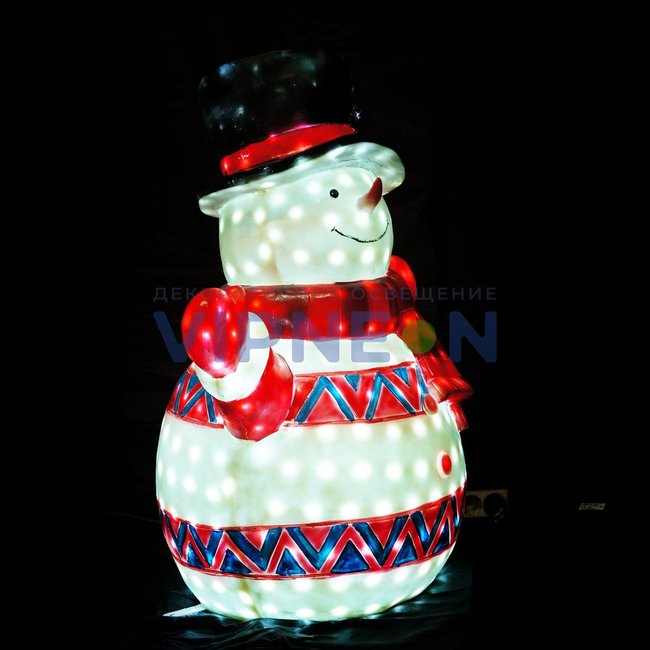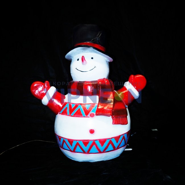 Световая фигура "Снеговик в цилиндре" 85*70*50 см из стекловолокна