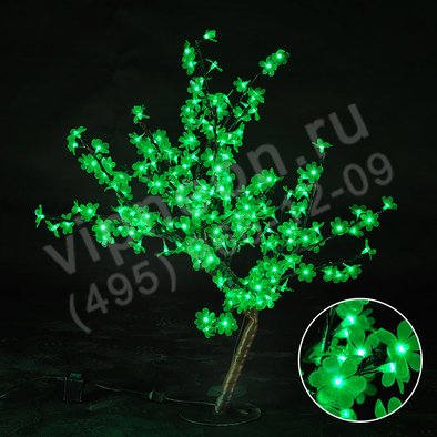 На 32 ветках расположены 224 светодиода зеленого цвета. Габариты декоративного осветительного устройства составляют 0,8 Х 0,8 метра, потребляемая прибором мощность 12 Вт, рабочее напряжение 24 В (трансформатор в комплект поставки не входит).